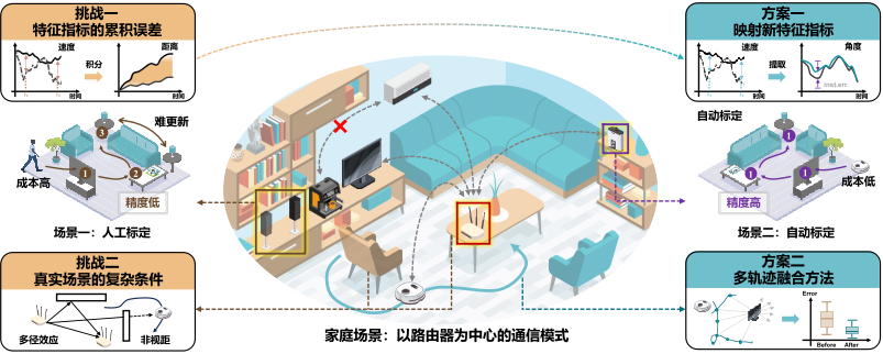 针对“精度低”的问题,团队摒弃了传统模型中信号无遮挡的理想化假设,首次面向物品繁杂的真实家庭环境,构建了一套新的理论模型。该模型能够“理解”Wi-Fi信号在复杂环境中的传播规律,实现了在真实家庭中稳定可靠的高精度感知。