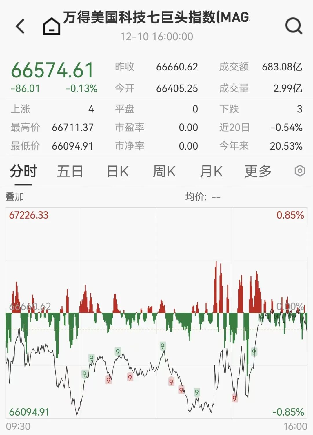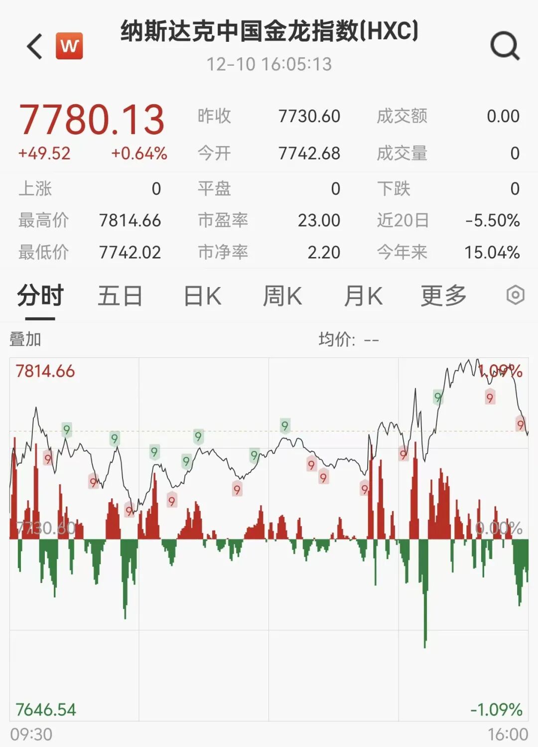 Wind数据显示,当地时间12月10日,美股三大股指全部上涨。万得美国科技七巨头指数下跌0.13%,亚马逊、特斯拉、谷歌涨逾1%。中概股多数上涨金策略,纳斯达克中国金龙指数涨0.64%。